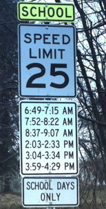 As drivers in Oakland County’s White Lake District (outside Detroit) complain that it is literally impossible to figure out what the speed limit is while driving past the sign above, various school officials and others are giving reasons for why the sign is so complicated. There are many schools in the area. An electronic sign is expensive. The devil made them do it.