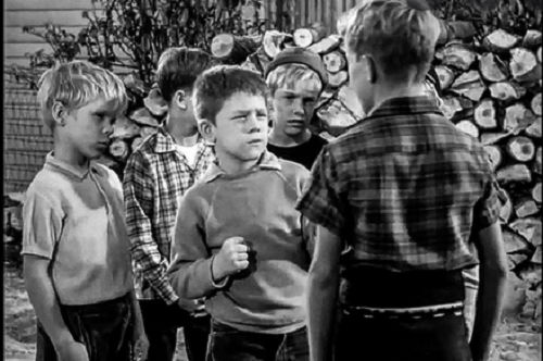 The episode I happened across, “One Punch Opie,” was about peer pressure and bullying. A new kid in town is bullying the other children to do things they shouldn’t, like raid Mr. Foley’s fruit and vegetable stands outside his store and steal apples and tomatoes. When Opie (the then-unbearably cute Ron Howard) refuses to follow the gang, the much larger kid threatens him. Opie ultimately confronts the boy who quickly proves that he is a coward, and backs down, ending his malign influence over the other boys.