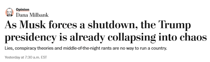 Why wouldn’t any sane and ethical editor tell Milbank, “Dana, I love ya, but that column makes you look like an apoplectic old fool and this paper look ridiculous. Now that you’ve gotten that out of your system, go write something that won’t cause spit-takes all over America”?